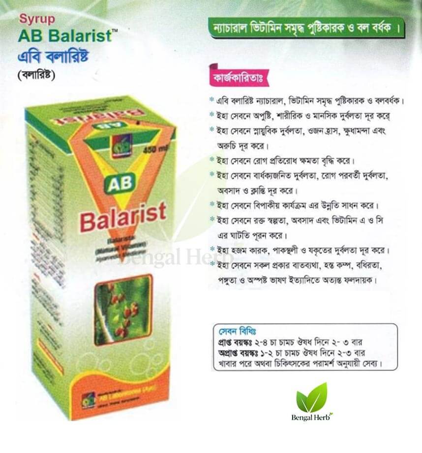 পণ্যের নাম: এবি বলারিষ্ট (AB Balarist)